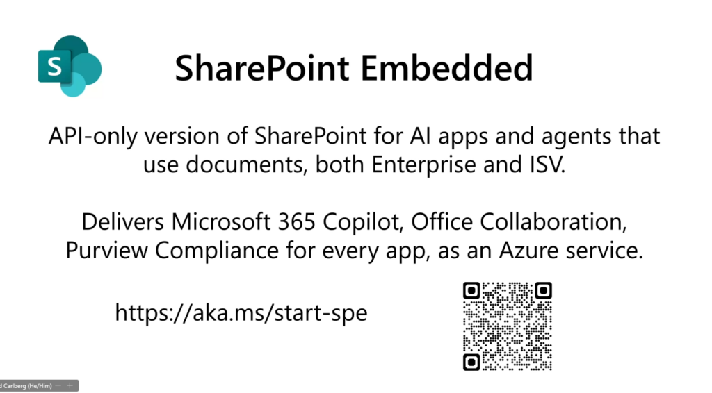 - SharePoint Embedded Overview | Microsoft Learn – http://aka.ms/start-spe