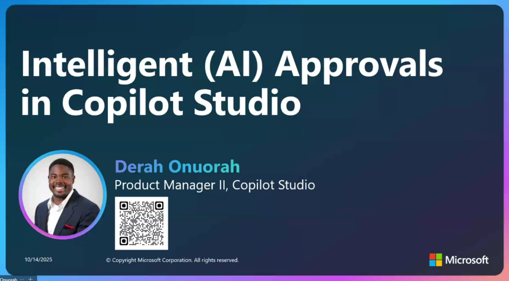 - Derah Onuorah – Automating decision-making with AI approvals in Microsoft Copilot Studio