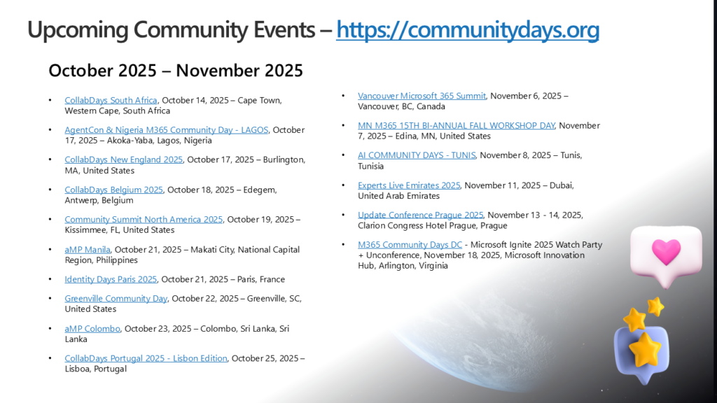 - The session types will include First Time Contributor, Community Docs Contributions, SPFx Contributions, Office365 CLI Contributions, AMA (Ask Me Anything) Open Forum sessions and MORE.