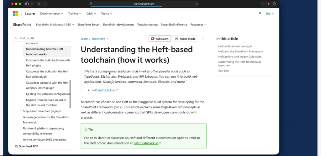 - SPFx’s Heft-Based Toolchain Overview – https://learn.microsoft.com/en-us/sharepoint/dev/spfx/toolchain/sharepoint-framework-toolchain-rushstack-heft