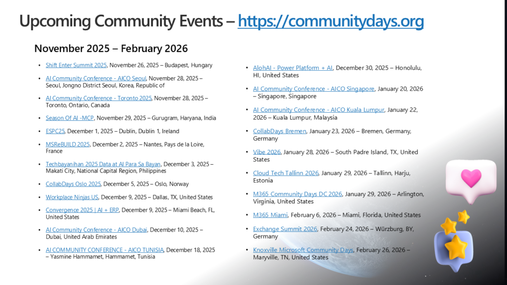 - Videos – Microsoft Community Learning – https://aka.ms/community/youtube