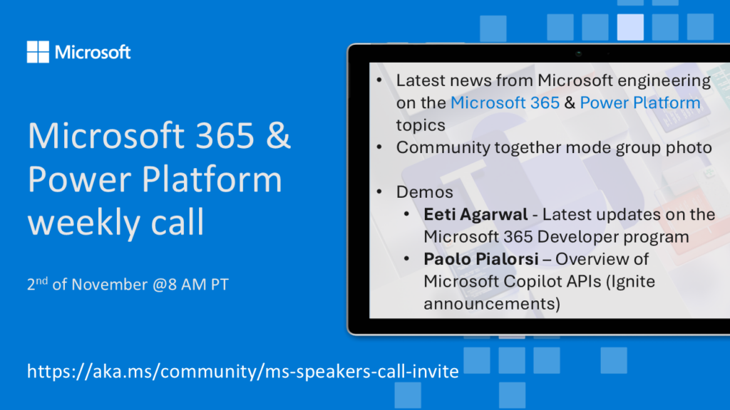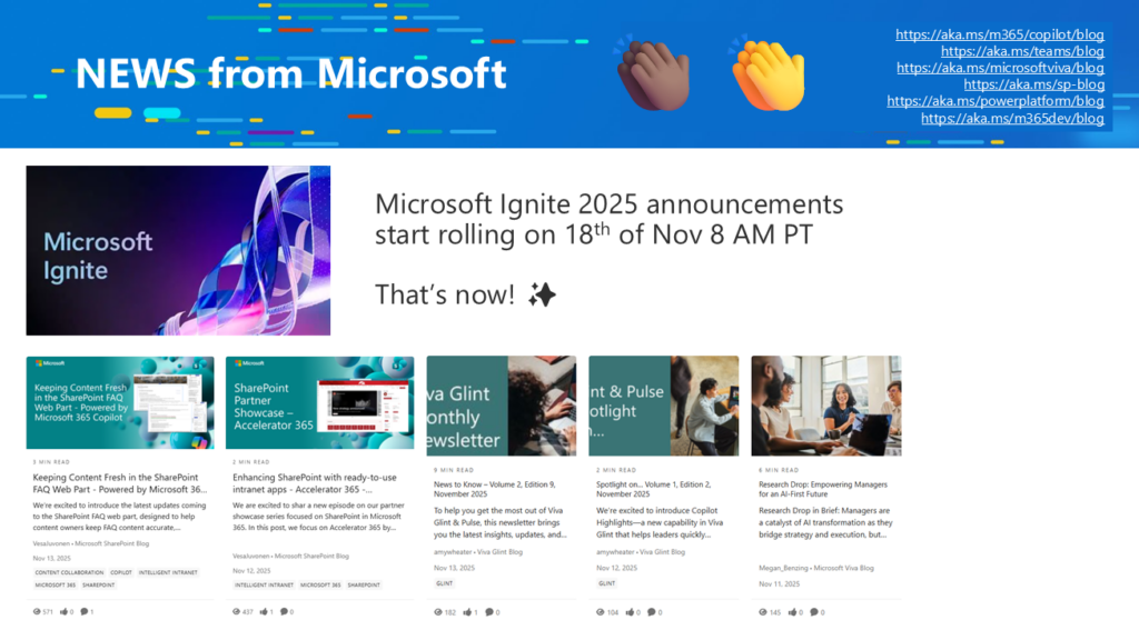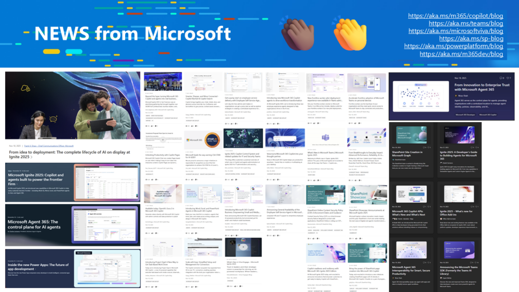 - Monthly roadmap updates – https://aka.ms/m365/dev/blog