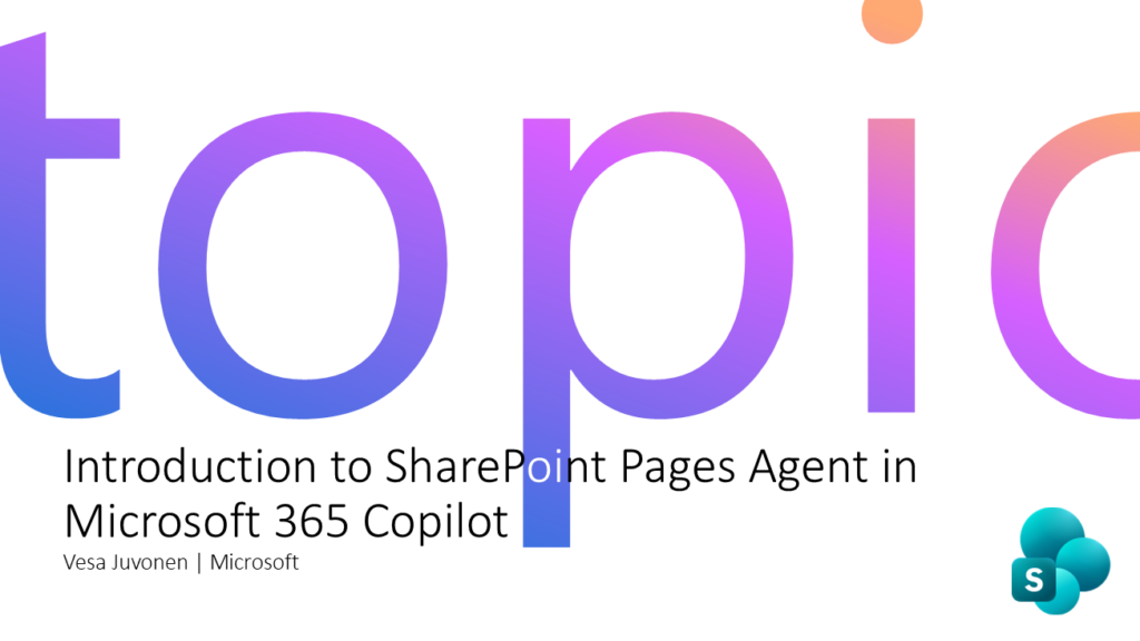 - Vesa Juvonen – Introduction to SharePoint Pages Agent in Microsoft 365 Copilot
