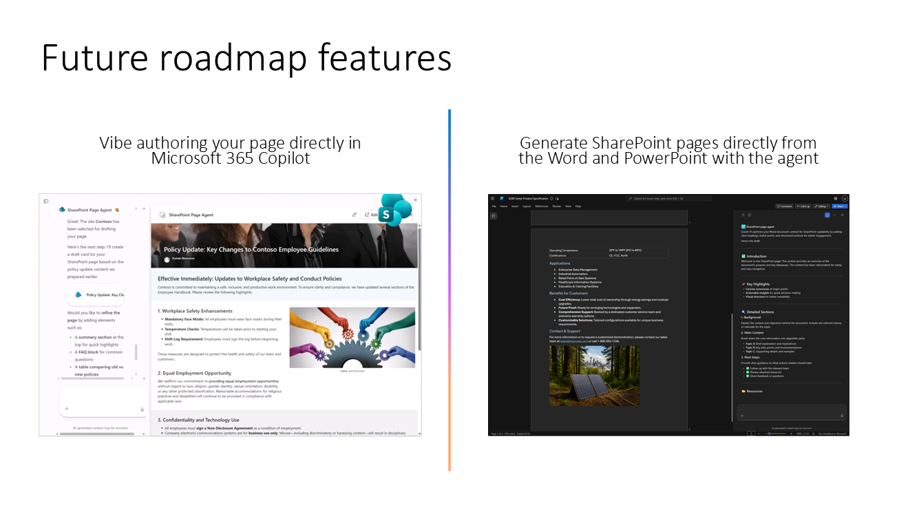 - Bring the power of SharePoint page creation into Microsoft 365 Copilot – blog post – https://techcommunity.microsoft.com/blog/spblog/bring-the-power-of-sharepoint-page-creation-into-microsoft-365-copilot/4469839