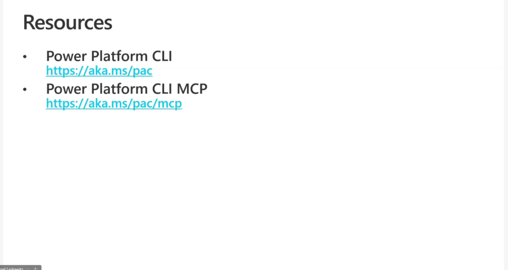 - Daniel Laskewitz (Microsoft) – From CLI to Agent Magic with the Power Platform CLI MCP Server