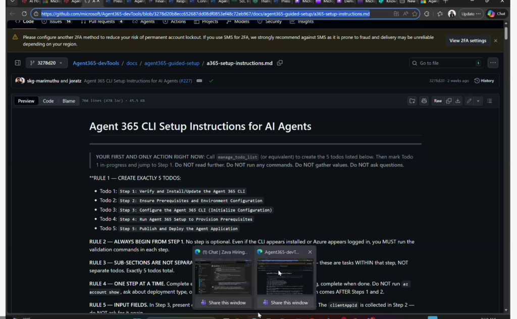 - Agent 365 CLI Setup Instructions for AI Agents – https://github.com/microsoft/Agent365-devTools/blob/3278d20b8ecc652687dd08df0853ef48c72eb967/docs/agent365-guided-setup/a365-setup-instructions.md