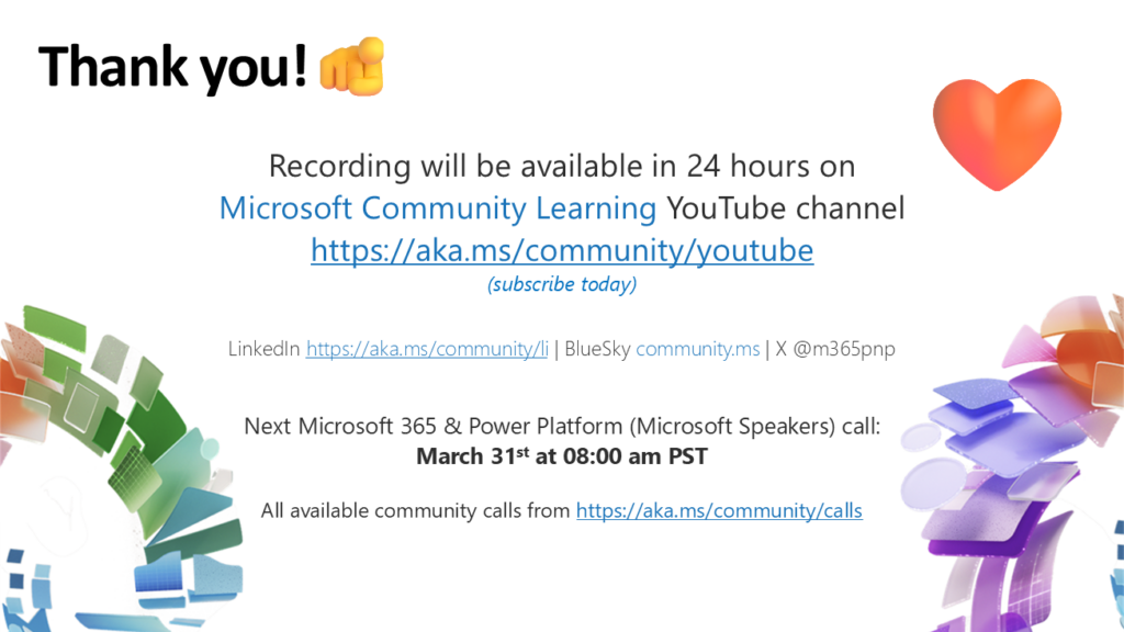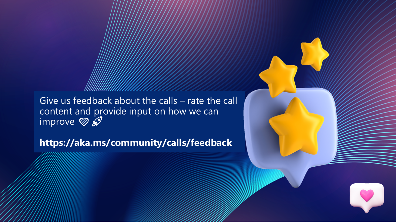 - Community Call YouTube Recording from Microsoft will be available when uploaded by Microsoft