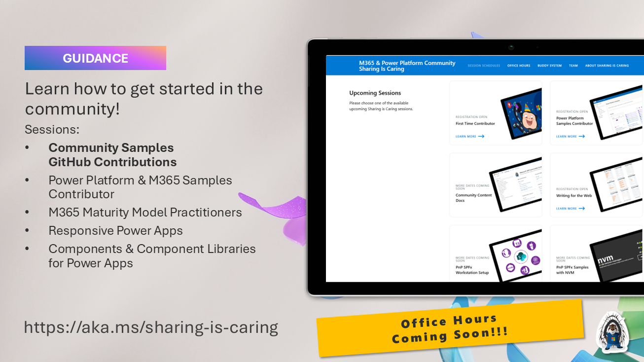 - A community initiative that provides live hands-on sessions to help with contribution guidance and using PnP resources.