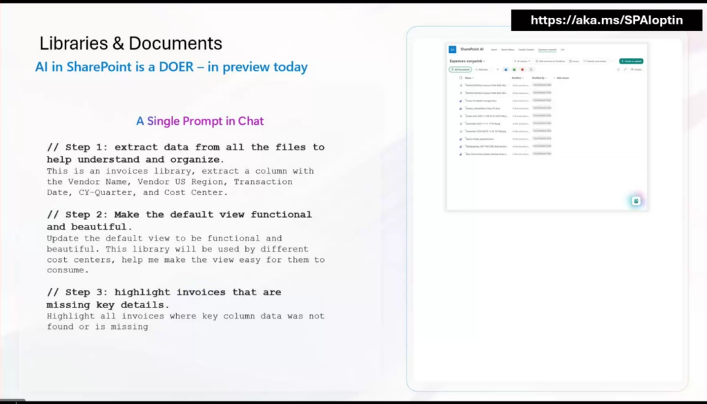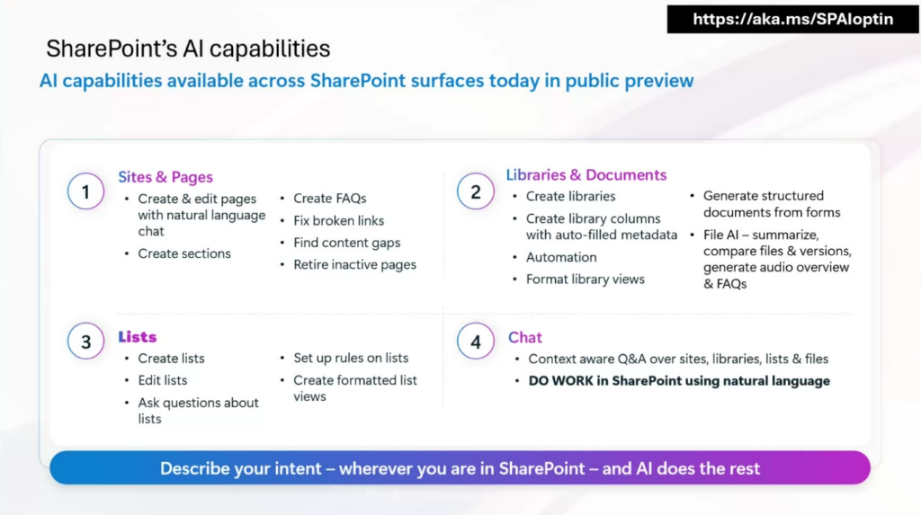- Get started with AI in SharePoint – https://aka.ms/SPAIOptin