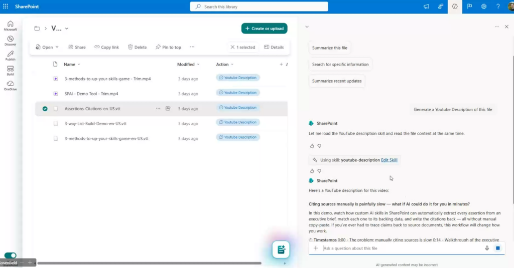 - Zach Rosenfield – Introduction to custom AI Skills in SharePoint