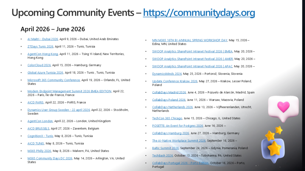 - The session types will include First Time Contributor, Community Docs Contributions, SPFx Contributions, Office365 CLI Contributions, AMA (Ask Me Anything) Open Forum sessions and MORE.