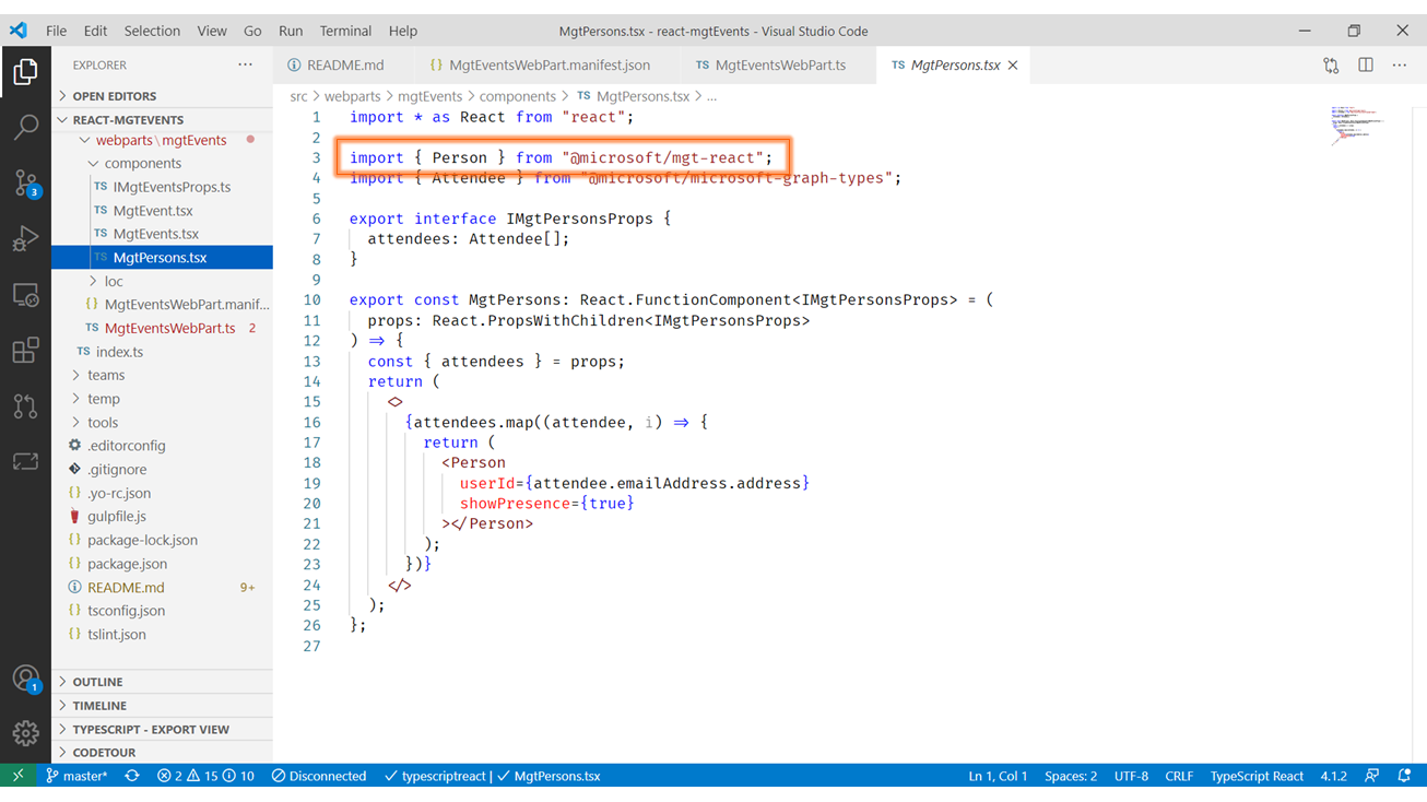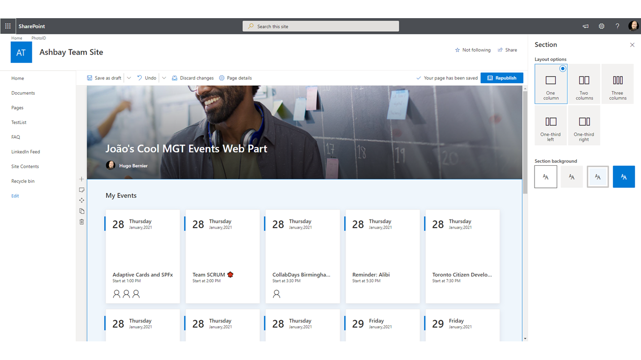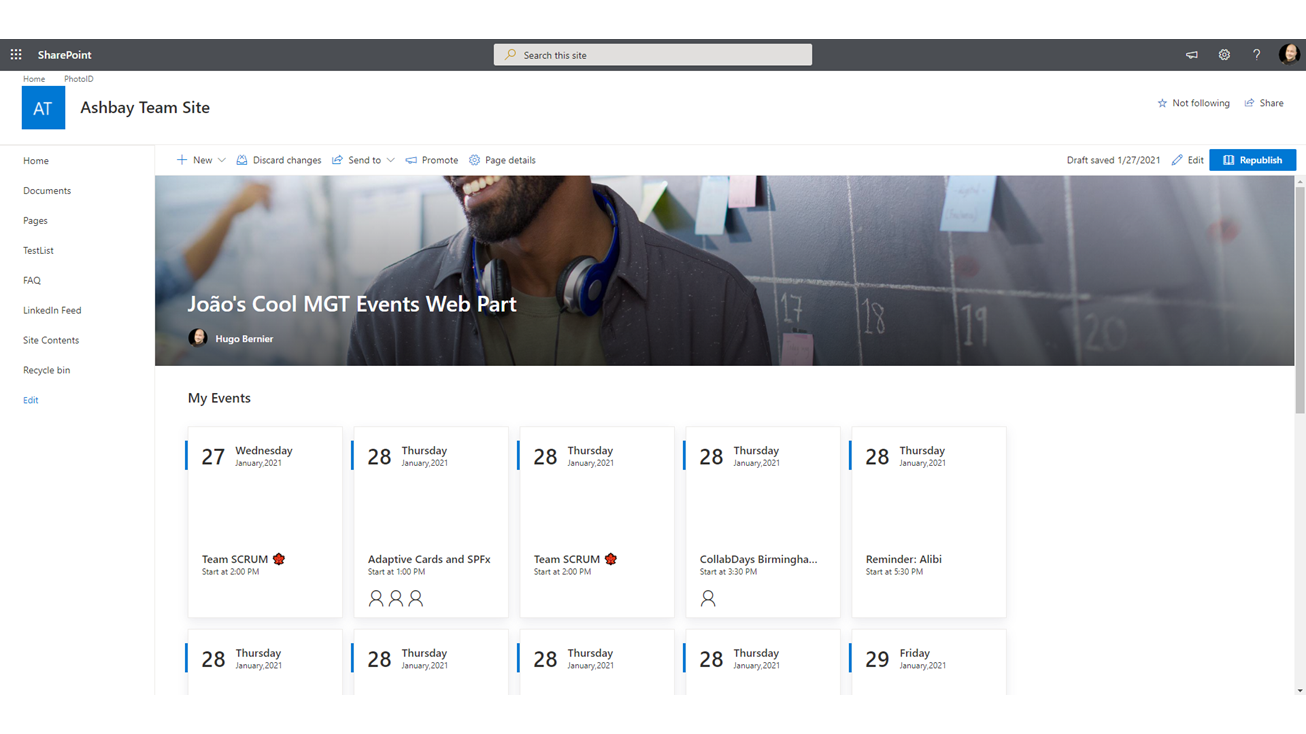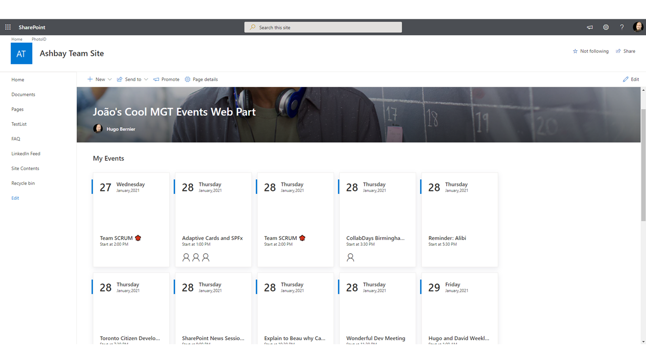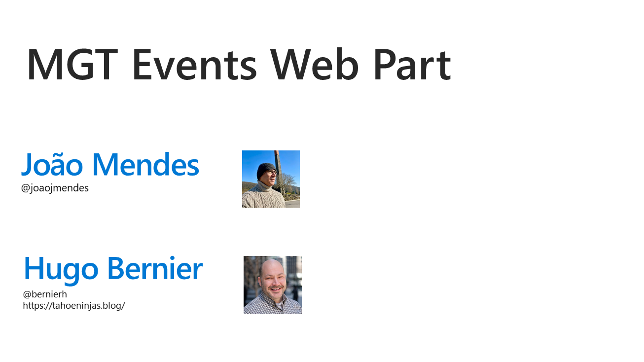 Building personal events web part with SPFx and Microsoft Graph Toolkit – Hugo Bernier (Sample provided by João Mendes)