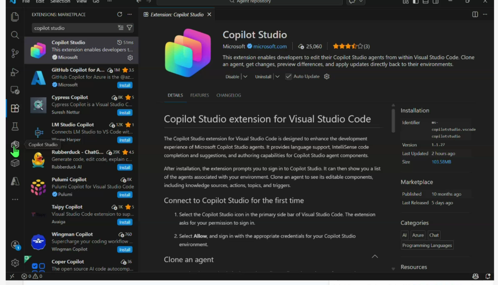 - Copilot Studio – Visual Studio Marketplace – https://marketplace.visualstudio.com/items?itemName=ms-CopilotStudio.vscode-copilotstudio