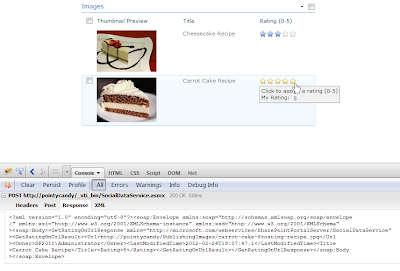 Sure enough, the list view web part did provide the fully functional ratings feature, but again, a list view web part is not as configurable and brandable as the CQWP can be, so I continued my research.