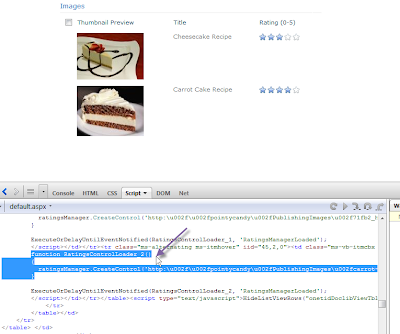 1. The ratings functionality is driven by a combination of CSS and JavaScript. A javascript file named “ratings.js” was now included on the page and is located in the “_layouts” folder.