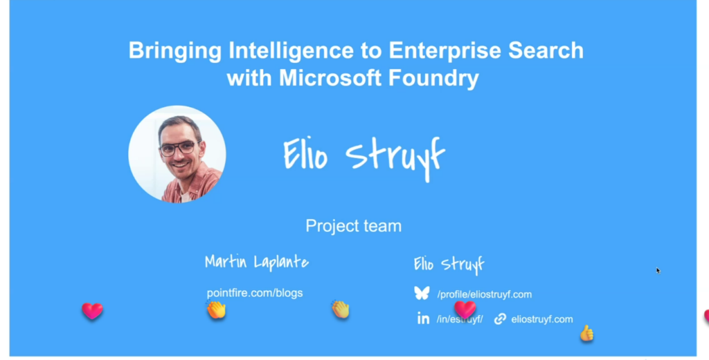 - Elio Struyf (EngageTime) – Bringing Intelligence to Enterprise Search with Microsoft Foundry