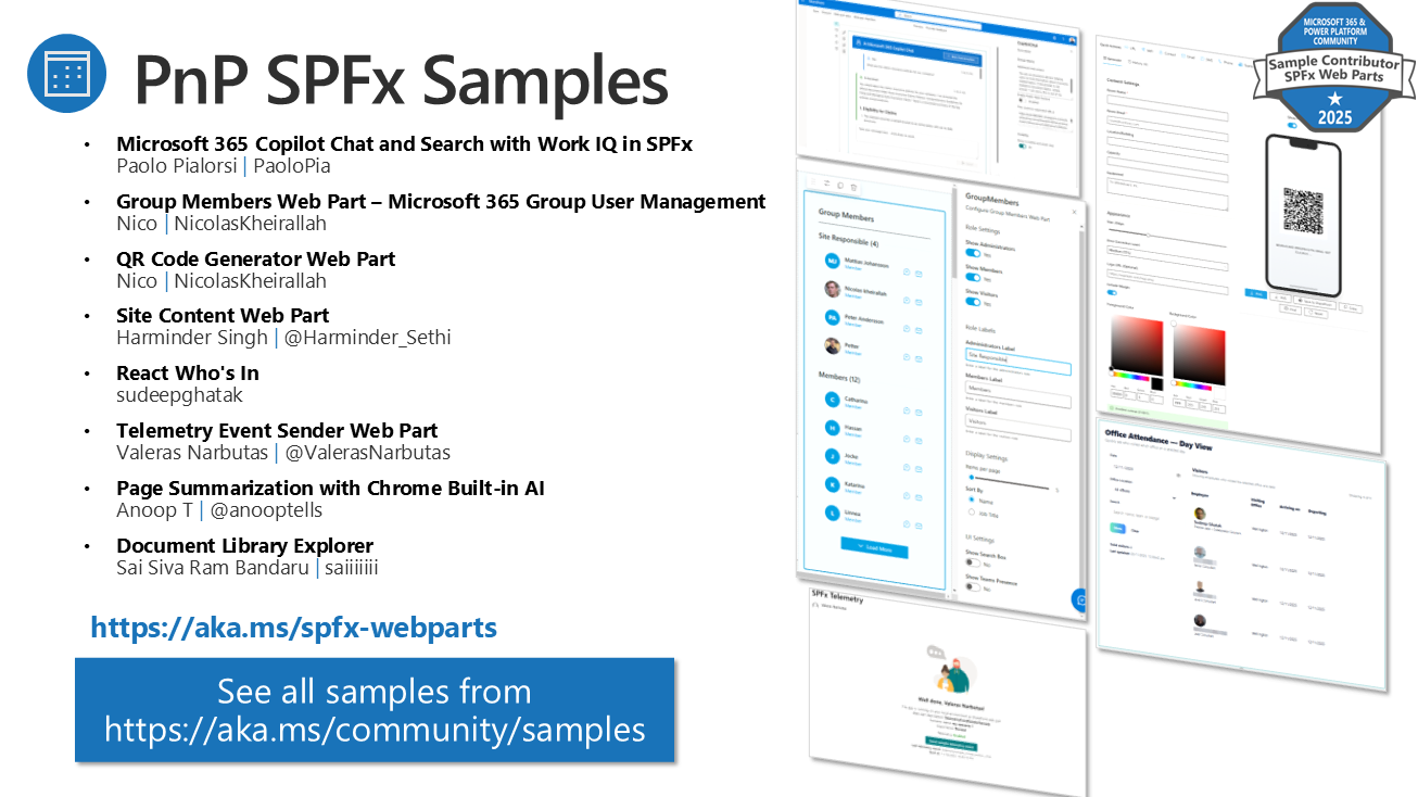 - PnP Sharing Is Caring: Hands-on sessions providing guidance for PnP Contributions