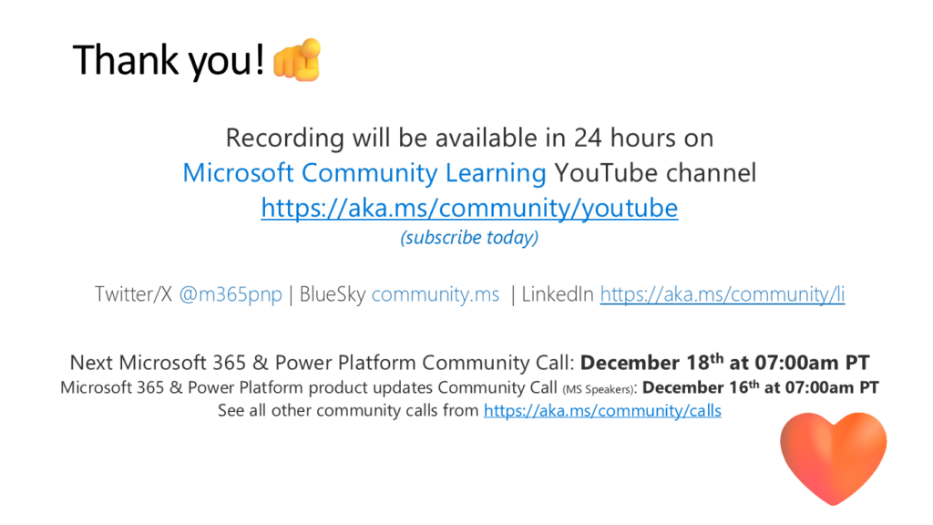 - Community Call YouTube Recording from Microsoft will be available when uploaded by Microsoft