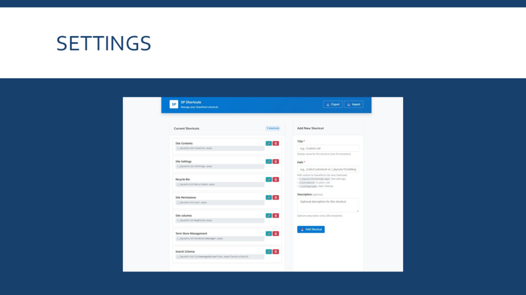 - Aimery Thomas (Avanade) – SP Shortcuts – Quick access to SharePoint setting pages