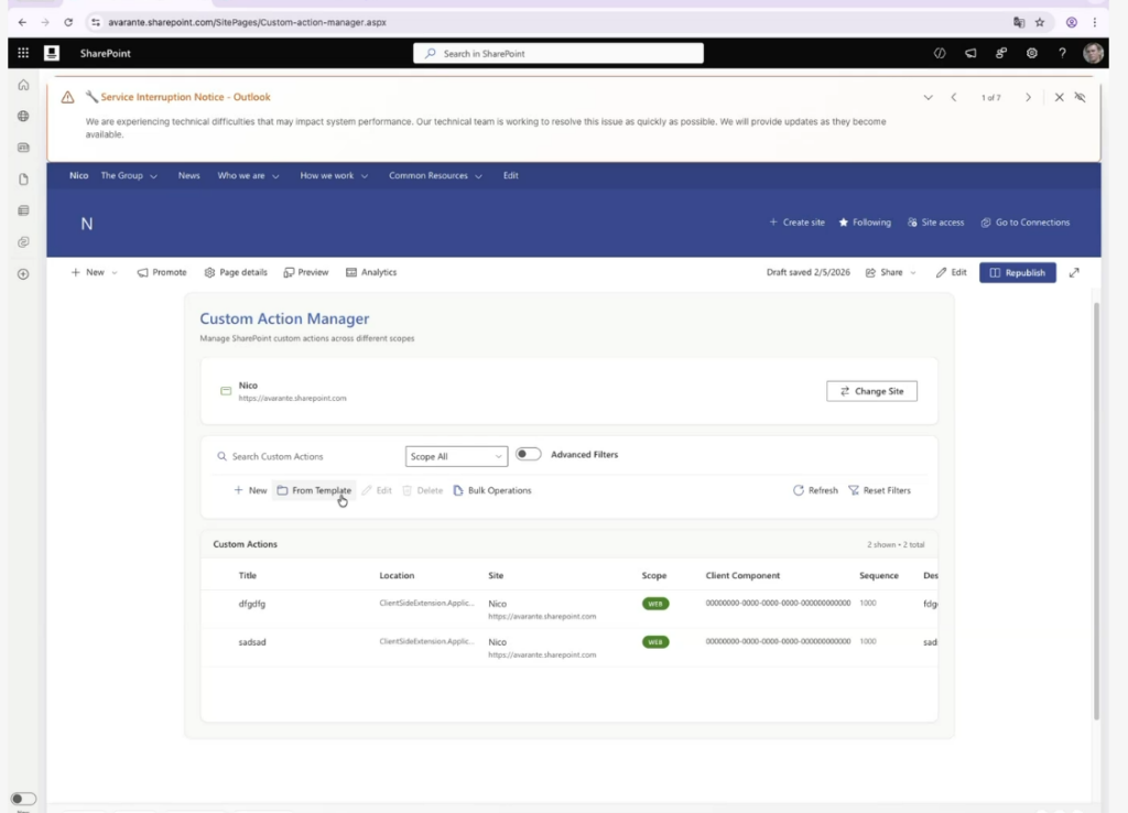 - SharePoint Custom Action Manager – https://github.com/pnp/sp-dev-fx-webparts/tree/main/samples/react-custom-action-manager