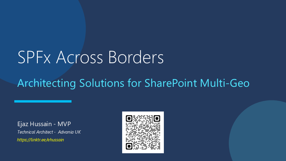 Ejaz Hussain (Advania UK) – SPFx Across Borders: Architecting Solutions for SharePoint Multi-Geo