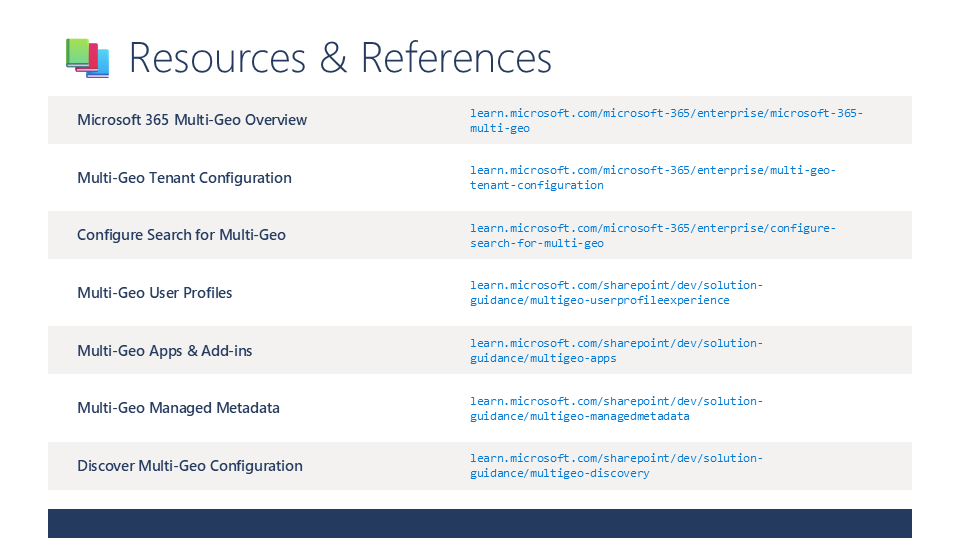 - Microsoft 365 Multi-Geo Overview – https://learn.microsoft.com/microsoft-365/enterprise/microsoft-365-multi-geo