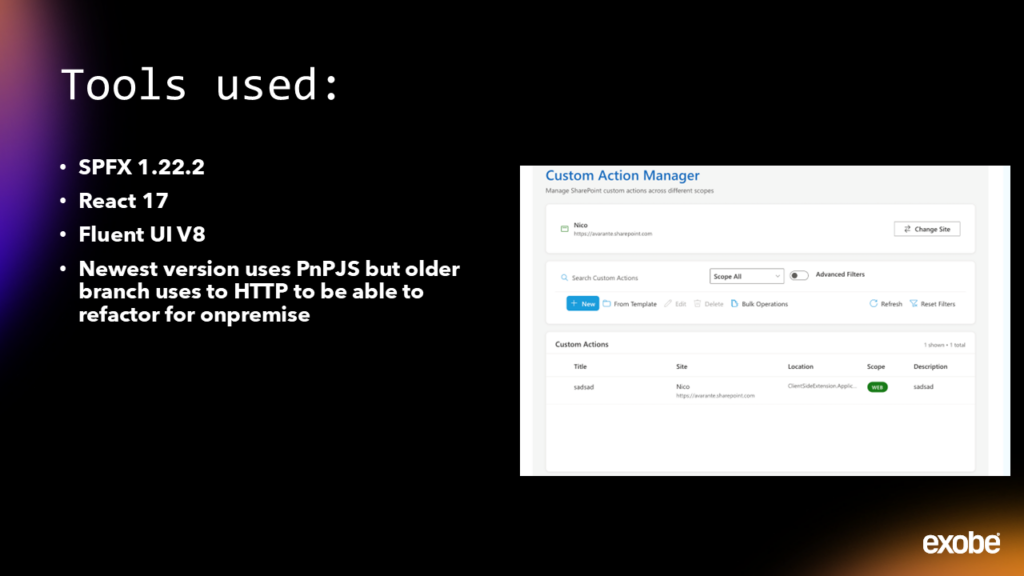 - Nicolas Kheirallah (Exobe) – Manage your Custom Action in SharePoint using Custom Action Manager Webpart
