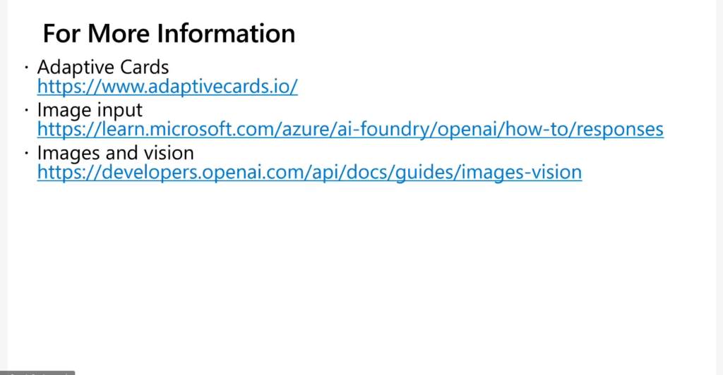 - Adaptive Cards – https://www.adaptivecards.io/