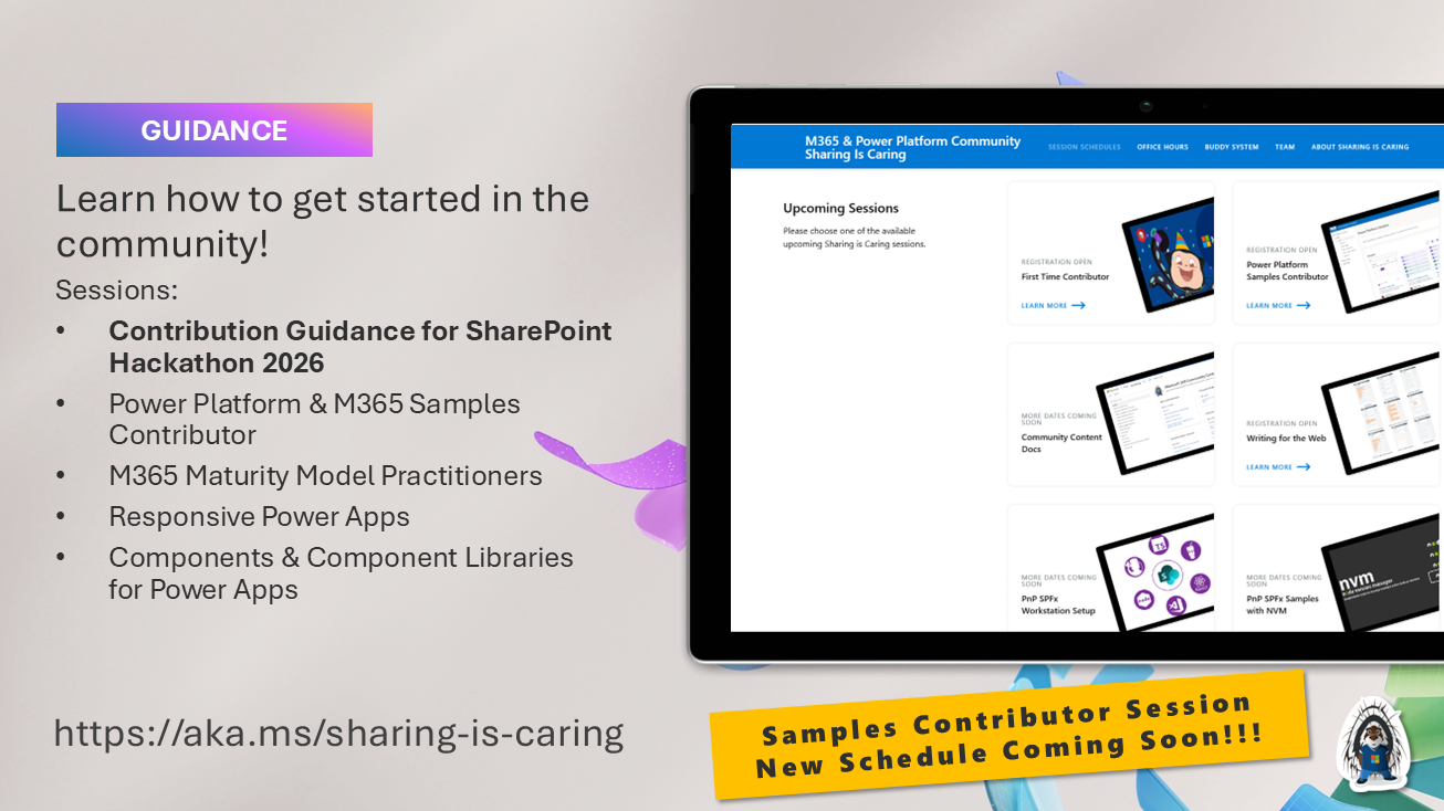 - PnP Sharing Is Caring: Hands-on sessions providing guidance for PnP Contributions