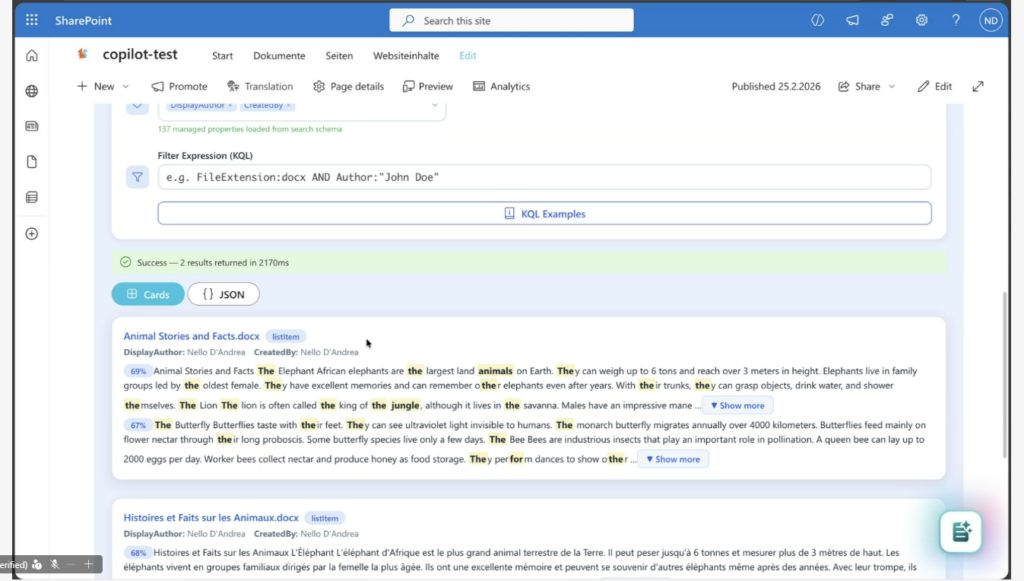 Nello D’Andrea (die Mobiliar) – Testing the Copilot Retrieval and Search APIs with SPFx