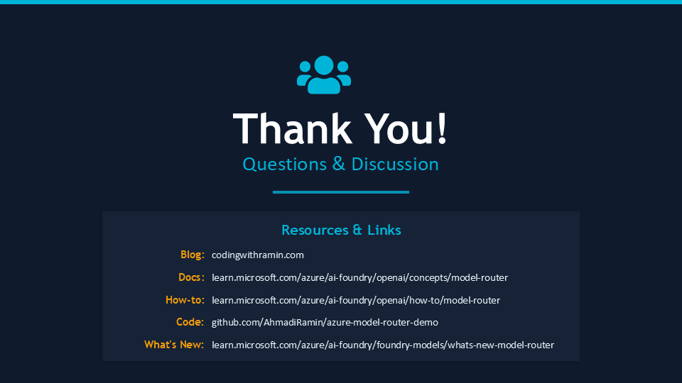 - Model Router Sample Demo Code: https://github.com/AhmadiRamin/azure-model-router-demo