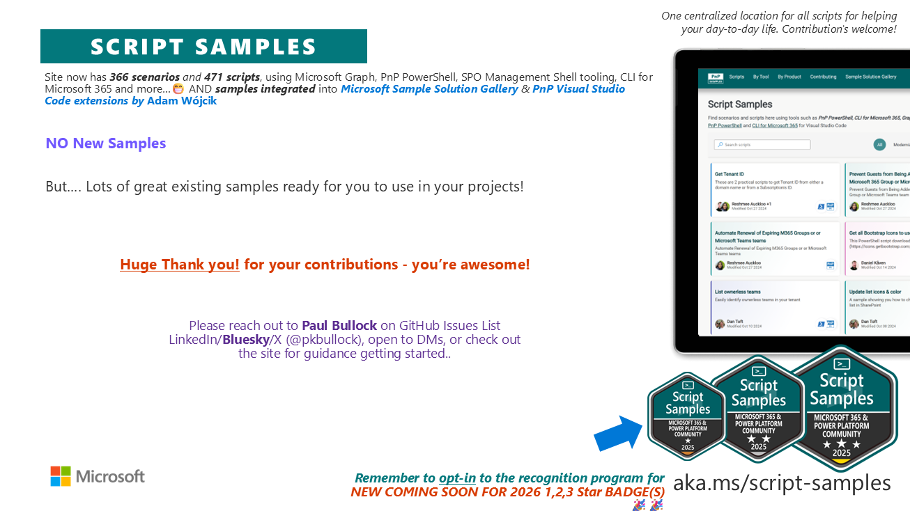 - A community initiative that provides live hands-on sessions to help with contribution guidance and using PnP resources.