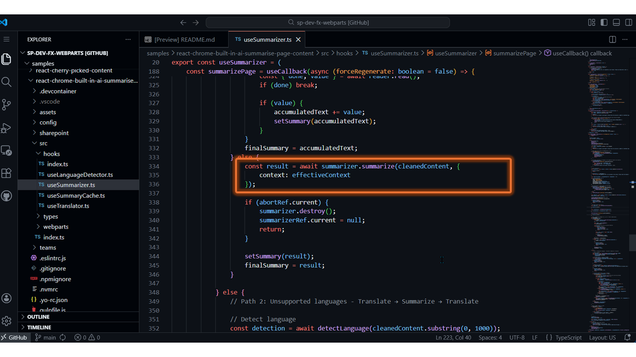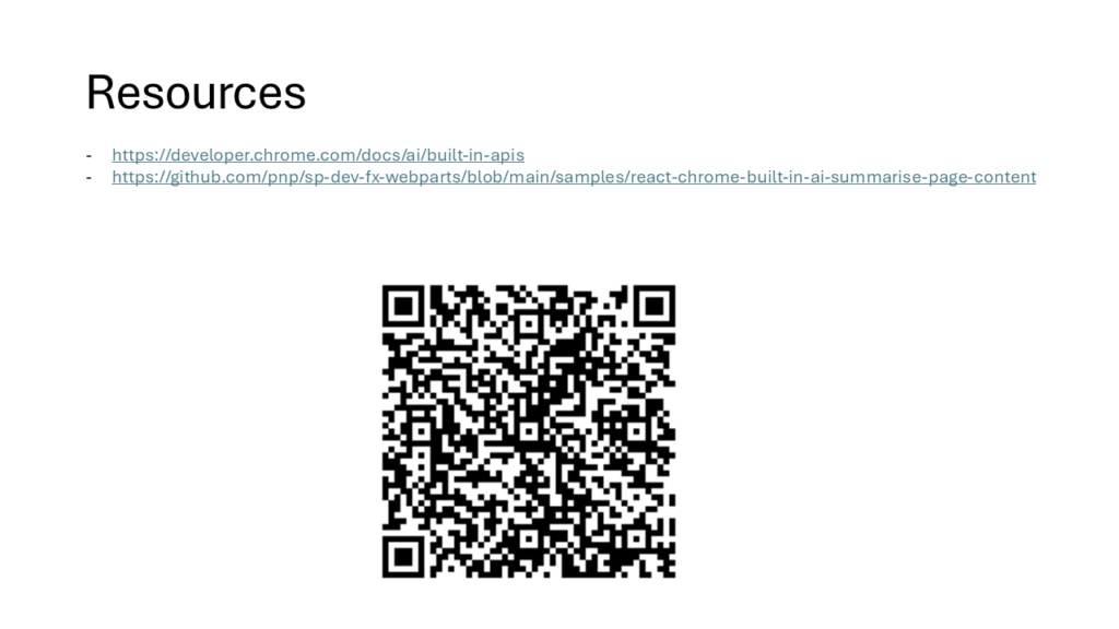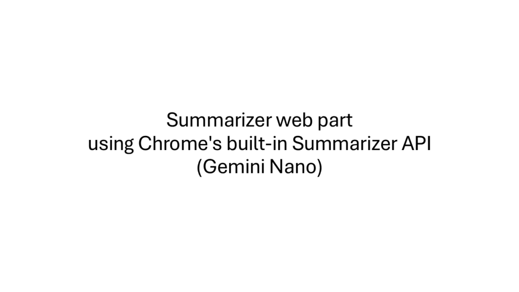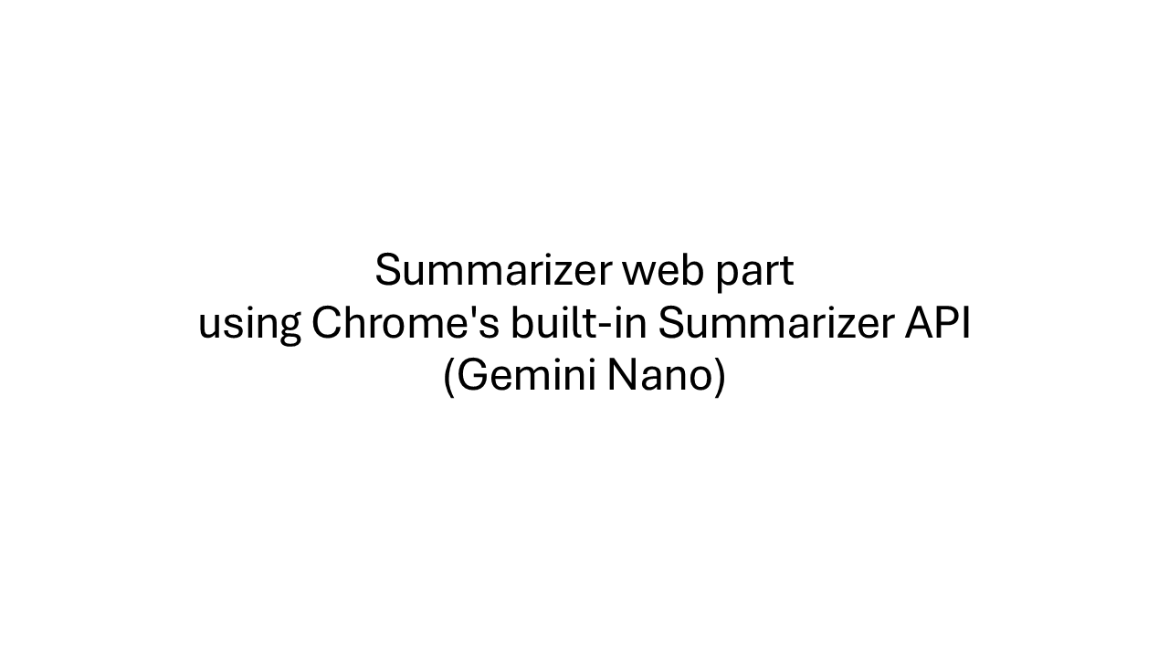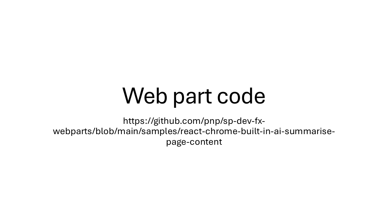 - Summarize Page Content with Chrome Built-in AI – https://github.com/pnp/sp-dev-fx-webparts/tree/main/samples/react-chrome-built-in-ai-summarise-page-content