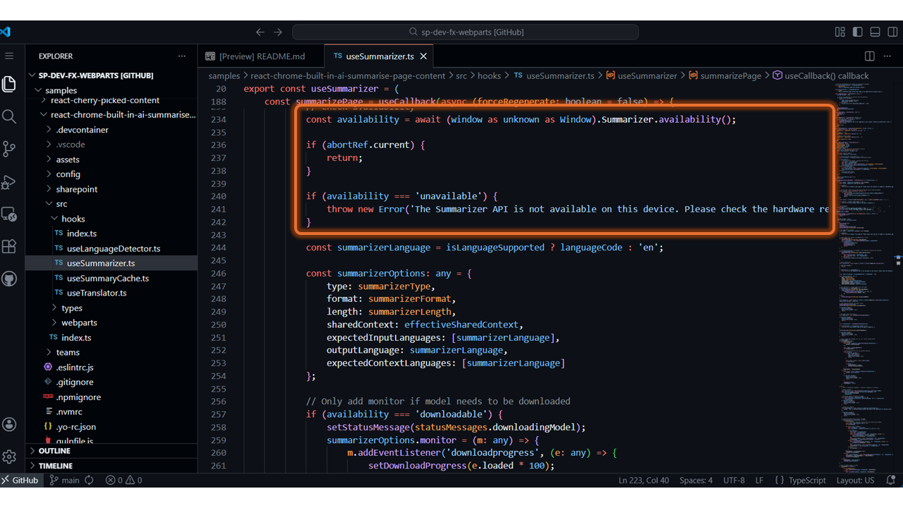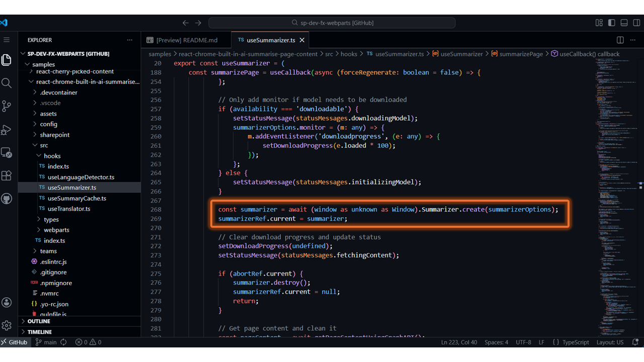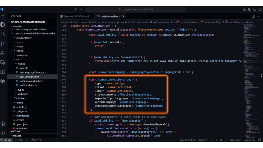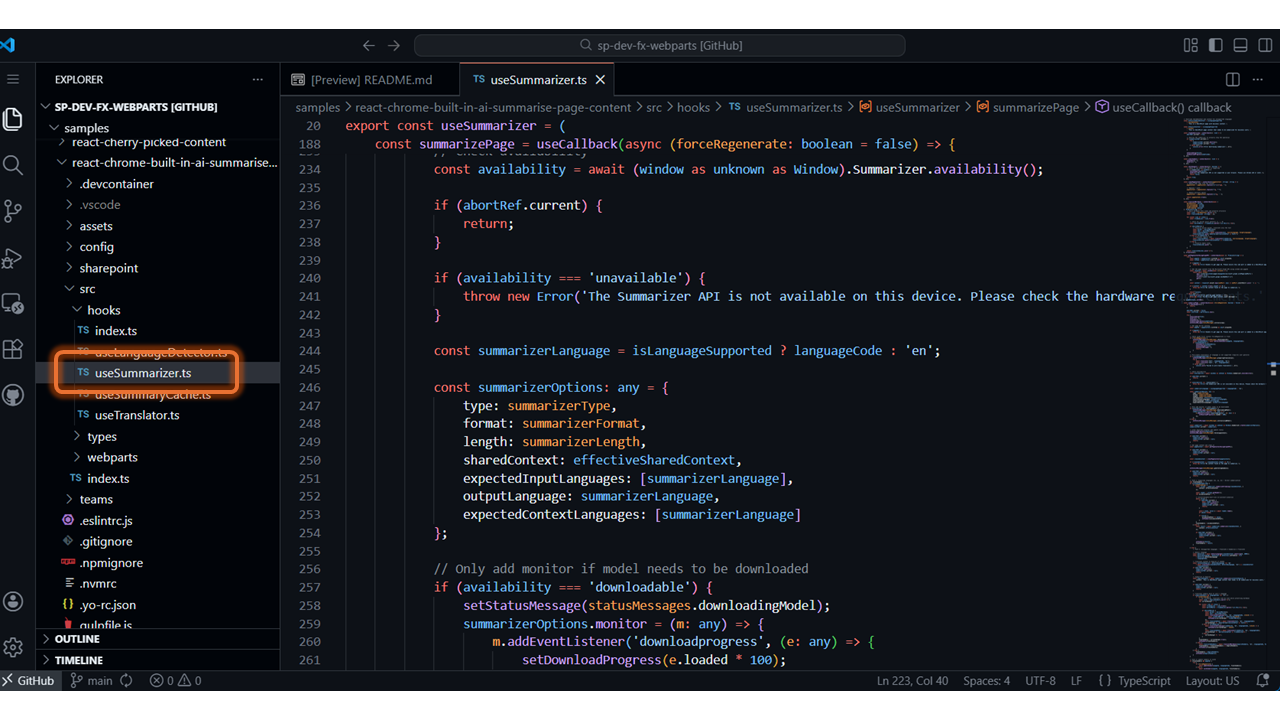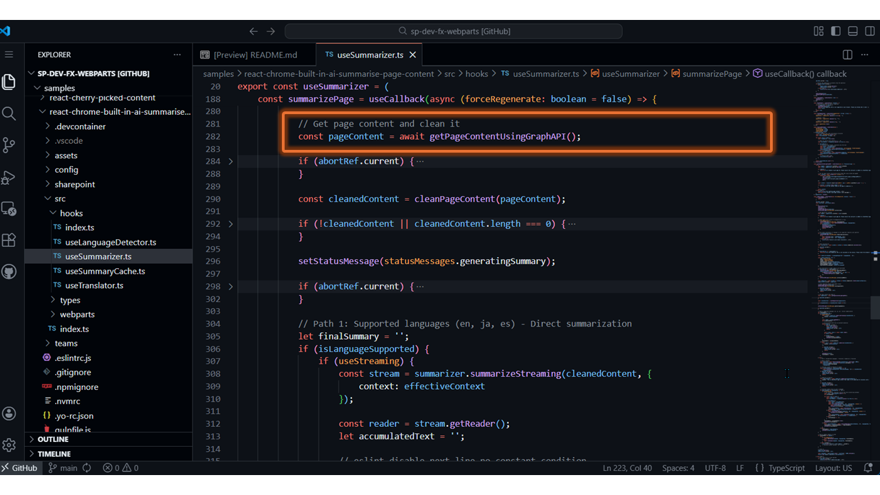 - Summarize Page Content with Chrome Built-in AI – https://github.com/pnp/sp-dev-fx-webparts/tree/main/samples/react-chrome-built-in-ai-summarise-page-content