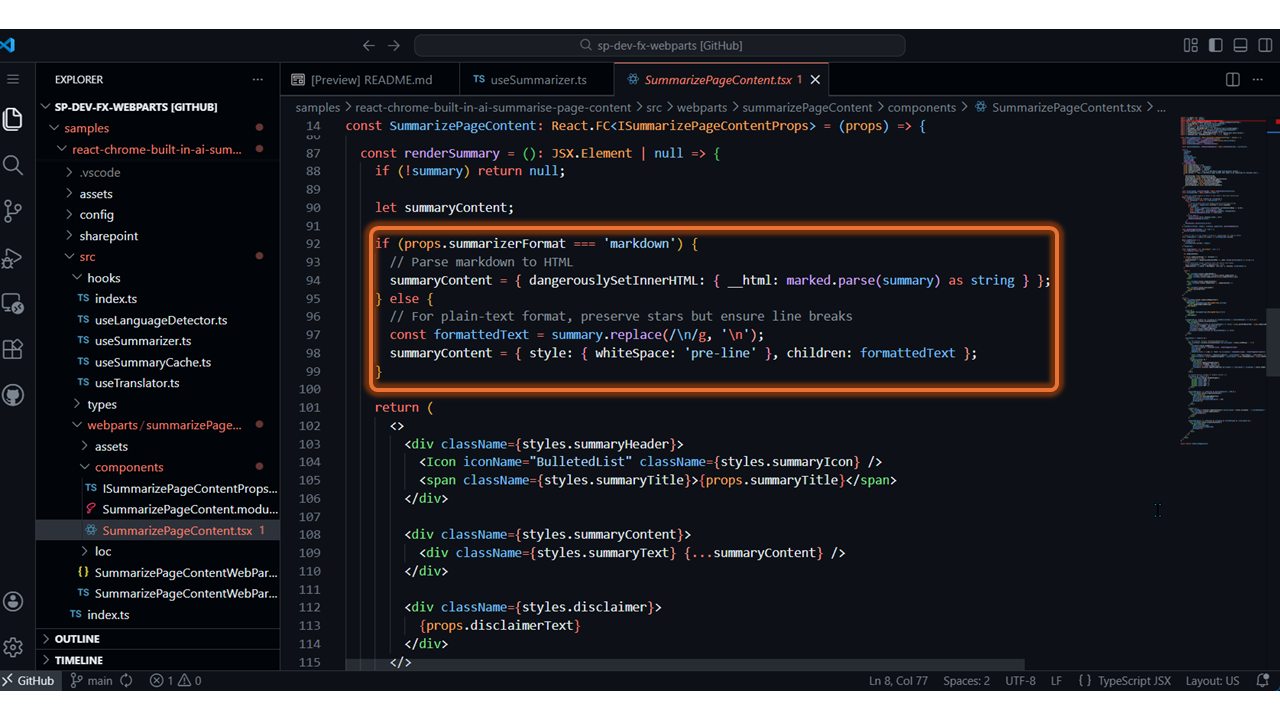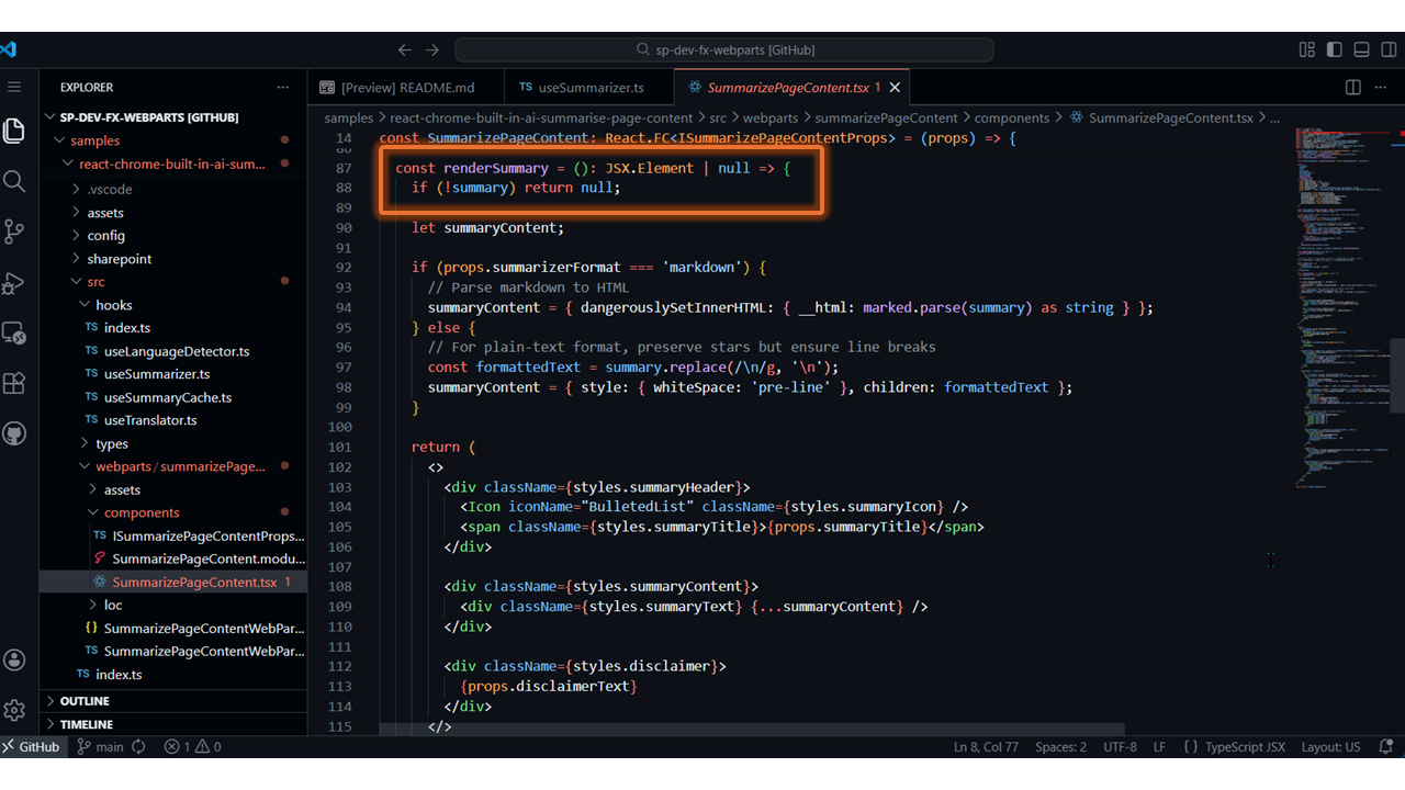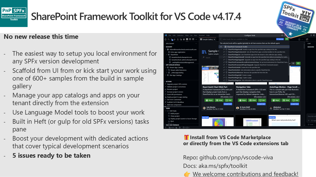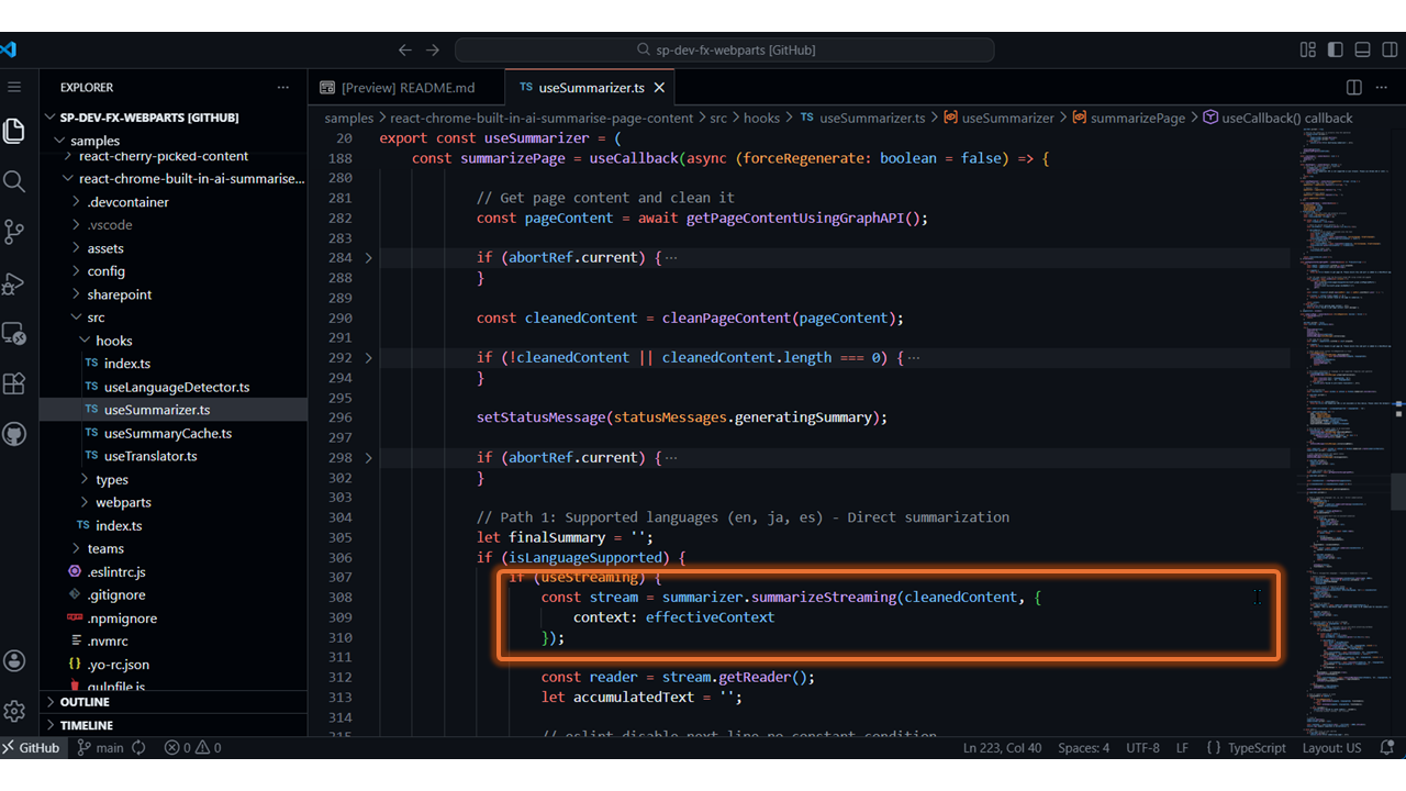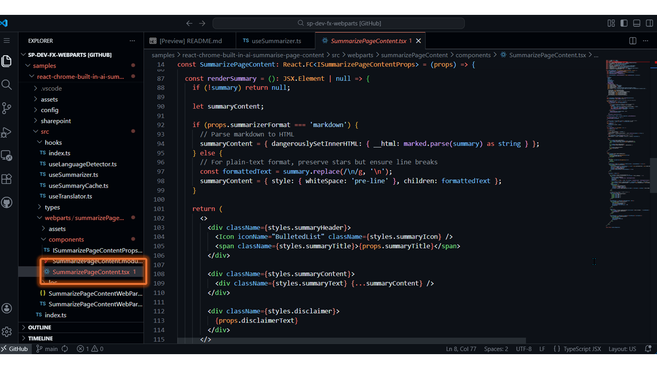 - Summarize Page Content with Chrome Built-in AI – https://github.com/pnp/sp-dev-fx-webparts/tree/main/samples/react-chrome-built-in-ai-summarise-page-content