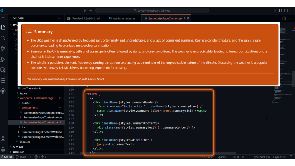 - Anoop Tatti ( Advania UK) – Summarizer web part using Chrome’s built-in Summarizer API (Gemini Nano)