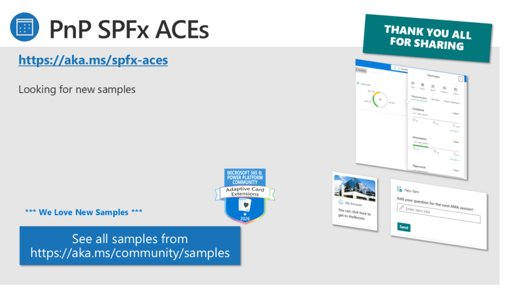 - PnP Sharing Is Caring: Hands-on sessions providing guidance for PnP Contributions