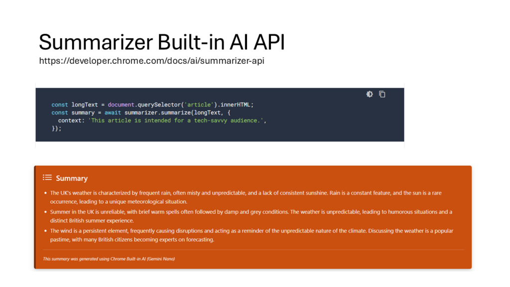 Anoop Tatti ( Advania UK) – Summarizer web part using Chrome’s built-in Summarizer API (Gemini Nano)