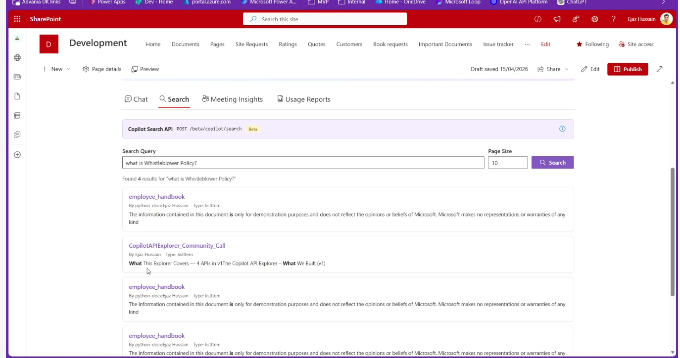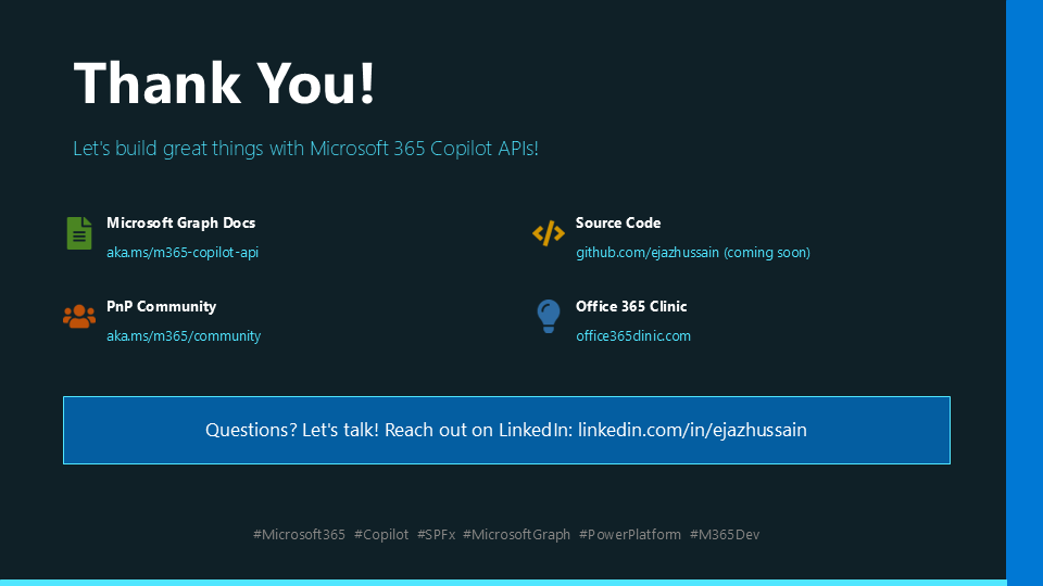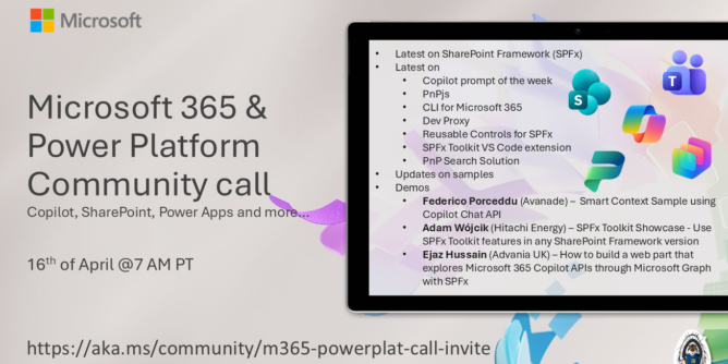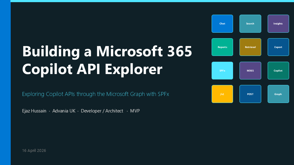 - Ejaz Hussain (Advania UK) – How to build a web part that explores Microsoft 365 Copilot APIs through Microsoft Graph with SPFx