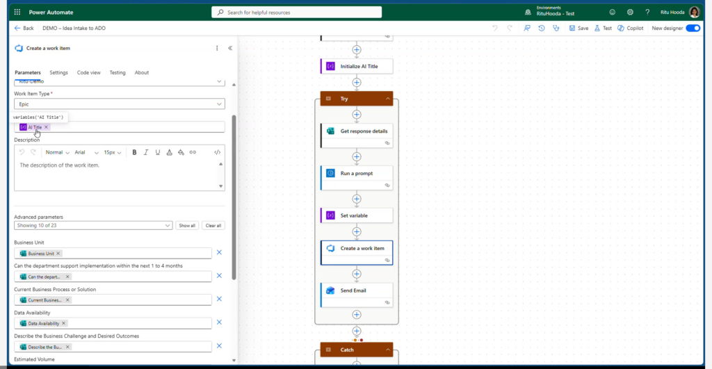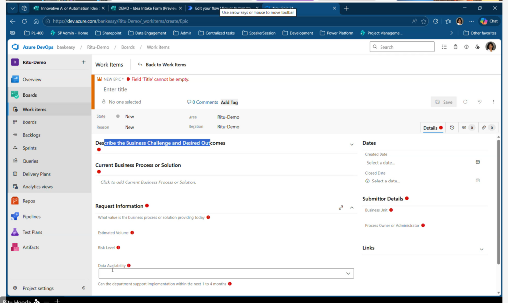 Ritu Hooda (First Bank & Trust) – AI‑Powered Azure DevOps Work Items with Power Automate