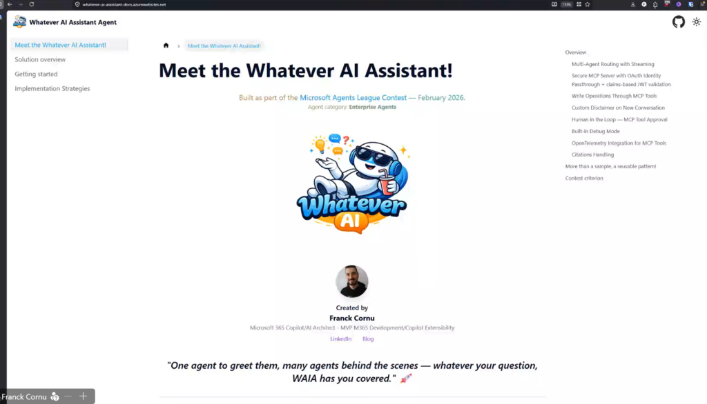 - Whatever AI Assistant – Demo (Teams) – Agents League Video – https://www.youtube.com/watch?v=IVf5V2sxwLA