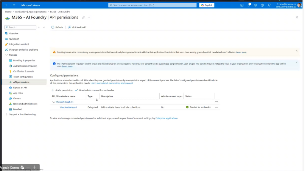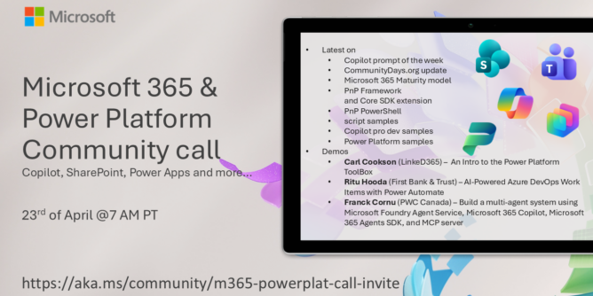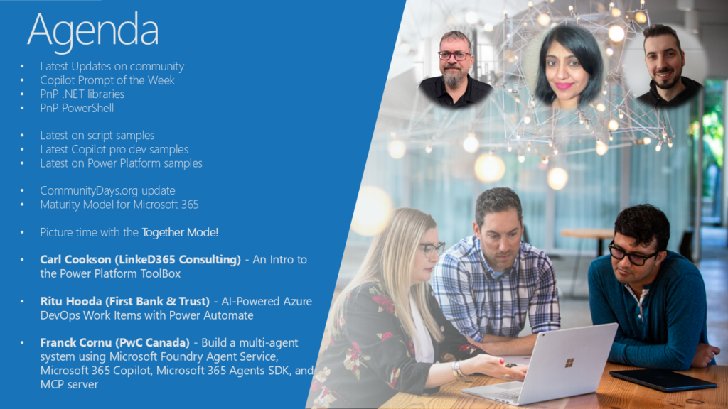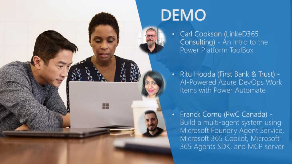 - Franck Cornu (PwC Canada) – Build a multi-agent system using Microsoft Foundry Agent Service, Microsoft 365 Copilot, Microsoft 365 Agents SDK, and MCP server